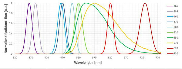 理想的熒光光源,一需要光譜覆蓋熒光染料的峰值激發波長,二需要在這個波長有較高的光強,這樣才能獲得更好的激發效果,對于CY5來說這個數值大概在650nm左右,而CY5.5則在670nm左右。
