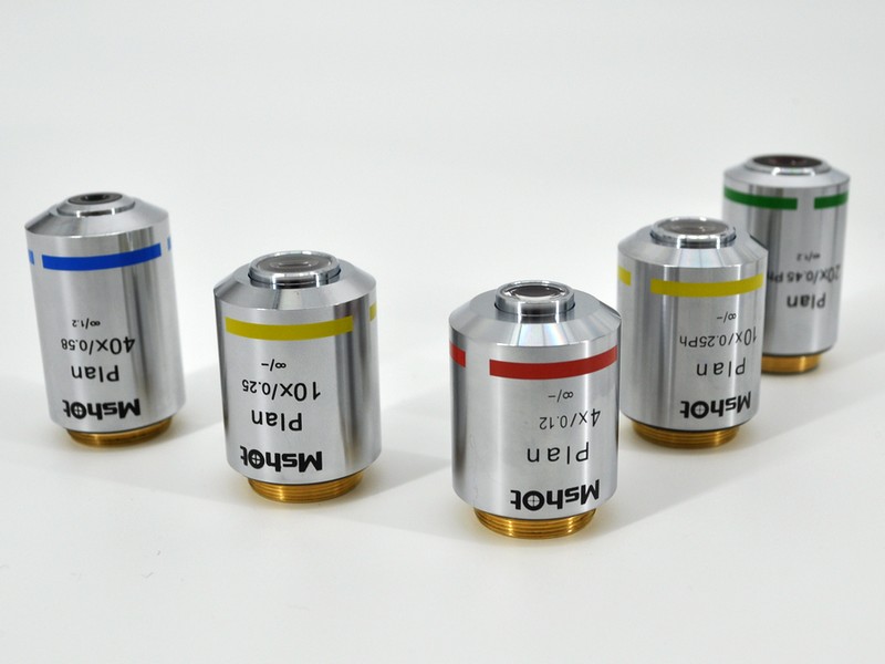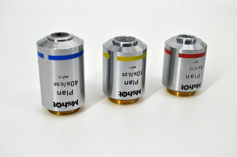 到固定筒長(zhǎng)末期和無(wú)限遠(yuǎn)光學(xué)時(shí)代,奧林巴斯和尼康終于實(shí)現(xiàn)在物鏡層面把橫向色差解決掉,稱為“獨(dú)立色差校正”,而蔡司和萊卡則沿用固定筒長(zhǎng)時(shí)代的策略,將補(bǔ)償橫向色差的任務(wù)交給了觀察頭底部的管透鏡和目鏡鏡,需使用跟物鏡配套的觀察頭才能消色差。明美物鏡采用的是獨(dú)立消色差設(shè)計(jì),更便于實(shí)現(xiàn)高質(zhì)量的顯微相機(jī)成像和定制產(chǎn)品開發(fā)。