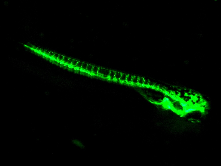 使用熒光蛋白對斑馬魚進行標記,使其在特定的組織器官中表達,就可以實現通過熒光信號觀察到特定器官的發育與生理變化,甚至可以動態追蹤其胚胎發育全程以及外源性物質或基因突變對器官發育的影響。如通過對血管系統、心臟、肝臟、淋巴系統等進行熒光標記觀測,可作為在血管生成、淋巴管生成、腫瘤形成、抗腫瘤藥物篩選與評價等領域應用的重要依據。