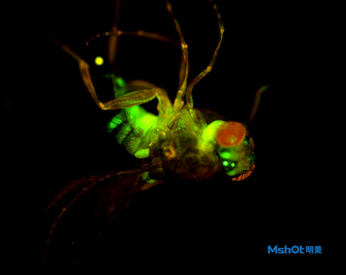 (2)熒光成像對儀器提出較高要求。模式生物研究經常會用到熒光染色或熒光素對特定目標物質或器官進行標記,在成像時,需要熒光信號具有高度特異性,不能相互混合影響成像質量,這要求合理選定染料并使用合適的濾光片組。生物顯微鏡可以輕松實現熒光需求,但體視顯微鏡則比較難滿足,因為體視熒光顯微鏡不常見,而很多體視顯微鏡又無法升級安裝熒光模塊和濾光片組,或初級物鏡的品質不理想,需要注意挑選MZX81等成熟方案。