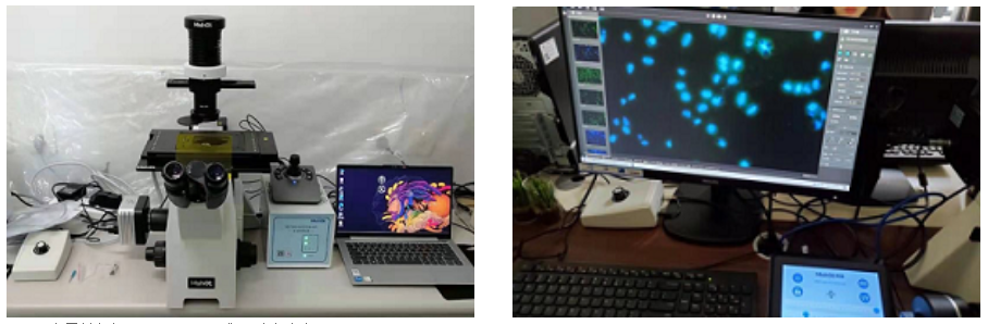 (2) 研究級解決方案:電動XYZ倒置熒光顯微鏡MF53-N + 高靈敏相機(jī)MC50-S/MS23 或 研究級相機(jī)MSH12/MSH05