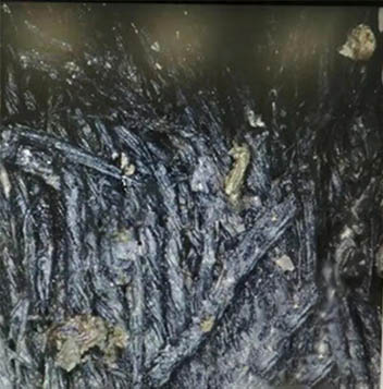 顯微鏡下,這處“泥土”果然清晰可見條縷狀,是紡織物無疑。發現絲綢,曙光在前。