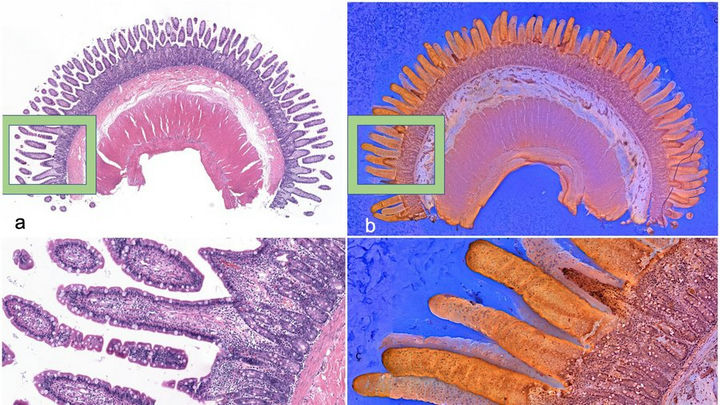 目前國外已經有寵物醫(yī)院在嘗試使用熒光模擬明場成像FIBI,來進行免冷凍切片制樣的快速病理診斷,據論文研究可靠性基本和HE染色的病理切片相近,而且制樣是非破壞性的,儀器只需要一臺405nm熒光激發(fā)的三軸電動顯微鏡,以及相機和配套的成像掃描軟件。