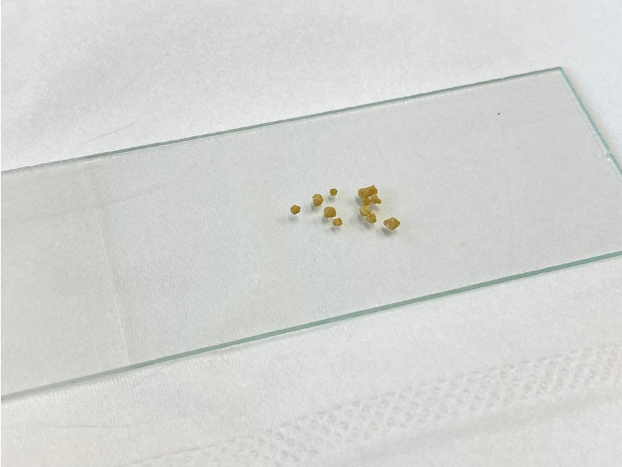 中藥顆粒外觀是大小不一的顆粒,易溶于水,可以放在載玻片上,加入一滴水,然后反復搖晃,即可使其均勻溶解到水中,再蓋上蓋玻片即可制成臨時裝片用于觀察。