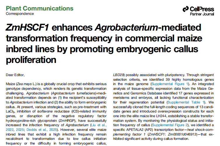 中國農業大學這項研究的成功,是生物學思路與先進研究工具完美結合的典范。ZmHSCF1 的發現為解決玉米遺傳轉化的行業難題提供了全新的方案;